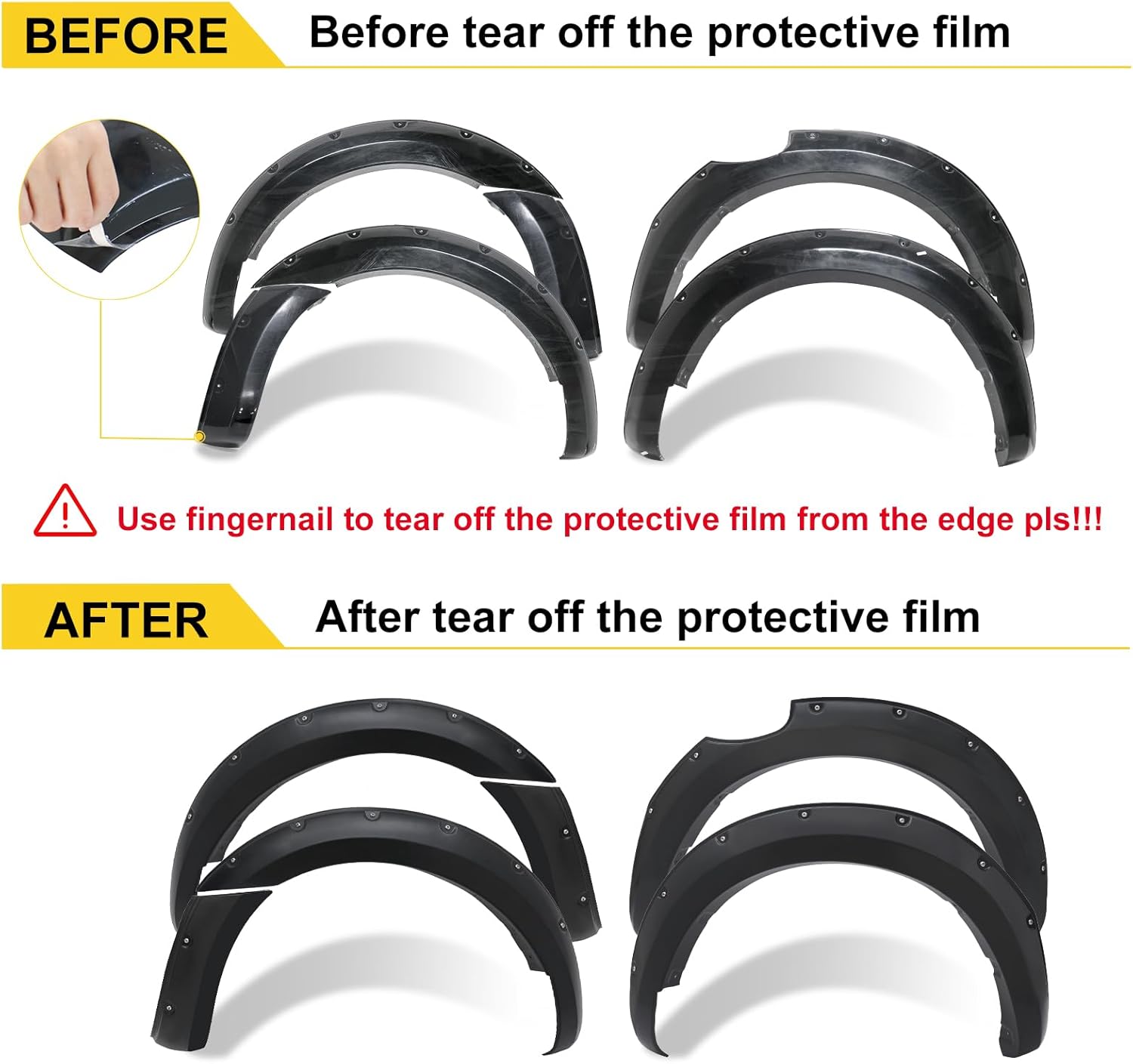 - Bolt-On or Stick-On Options: Some kits use 3M adhesive tape, others require screws or clips (usually included).